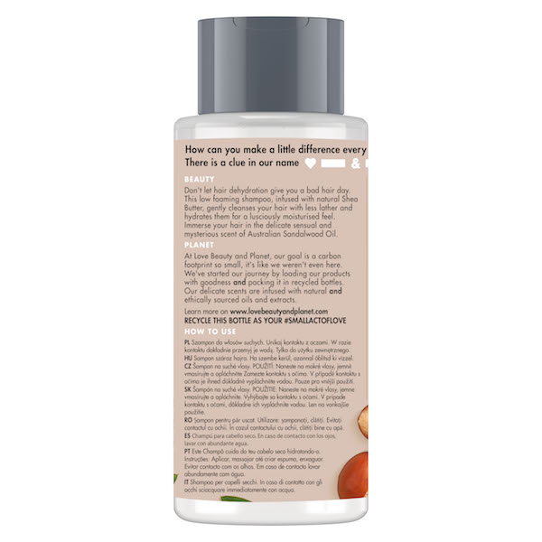 No permitas que la deshidratación de tu cabello te haga pasar un mal día. Este champú con manteca natural de karité hidrata el cabello y lo deja con un tacto exquisito. Sumerge tu cabello en el delicado, sensual y misterioso aroma del aceite de sándalo australiano.
