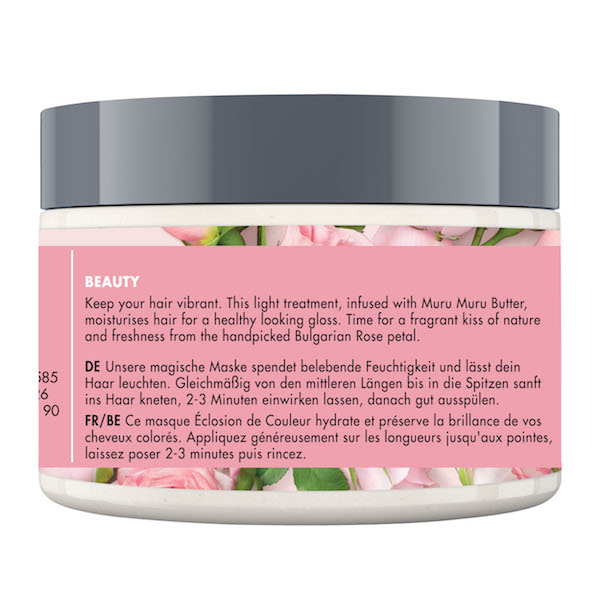 Mantén la vitalidad de tu cabello. Este suave tratamiento con manteca de murumuru hidrata tu cabello para que luzcas unos mechones con un brillo saludable. Te mereces el perfumado beso de los pétalos de rosa búlgara recogidos a mano que dejan una sensación de frescor natural.