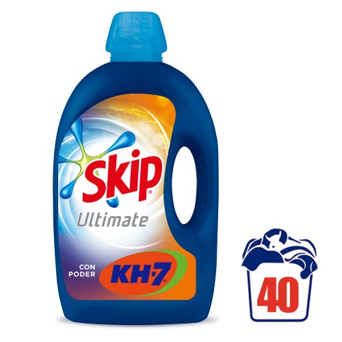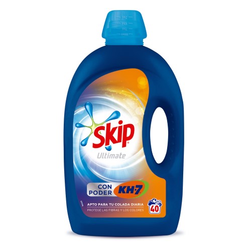 Skip y KH-7 presentan el nuevo Skip Ultimate con Poder KH-7. El nuevo Skip Ultimate con Poder KH-7 combina el cuidado de la ropa y el aroma a limpio de Skip Ultimate con la eficacia contra las manchas de KH-7.