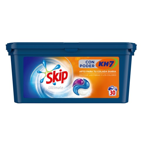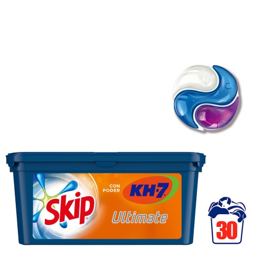 Skip y KH-7 presentan el nuevo Skip Ultimate con Poder KH-7. El nuevo Skip Ultimate con Poder KH-7 combina el cuidado de la ropa y el aroma a limpio de Skip Ultimate con la eficacia contra las manchas de KH-7.