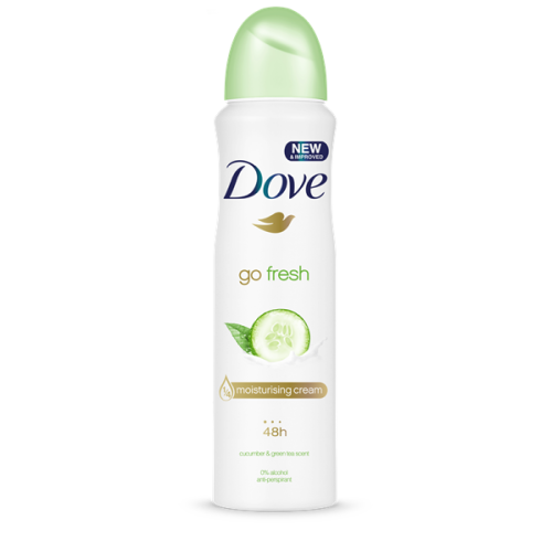Uno de los principales problemas de las mujeres es encontrar productos que nos liberen del sudor a la vez que cuiden nuestra piel y no la irriten. En las épocas de mucho calor, las axilas son una de las partes de nuestro cuerpo que más sufren y de las que menos protegemos. Dove te ofrece una gama de antitranspirantes con esencias de cítricos y de pepino que refrescan, protegen y perduran durante todo el día. Dove Go Fresh aporta una sensación de frescor y suavidad en las axilas que dura todo el día gracias a su fórmula con ingredientes naturales - extractos naturales de pepino y té verde - que junto con su ¼ de crema hidratante consigue mantener unas axilas protegidas y cuidadas durante 48 horas.