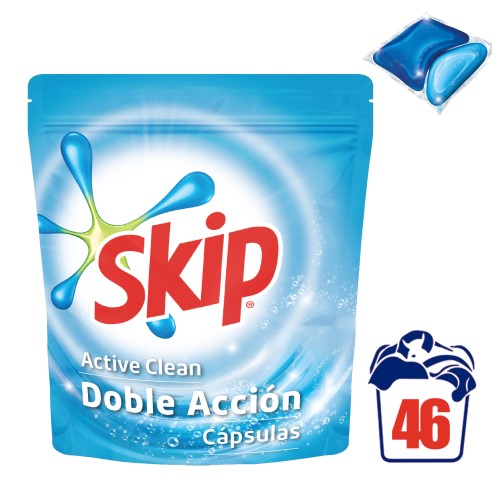La manera más sencilla de hacer la colada con el Skip más concentrado, Skip cápsulas es la manera más práctica de lavar tu ropa y usar la dosis correcta. 1 cápsula = 1 lavado. Coloca una única cápsula directamente en tambor, ¡Así de fácil! Skip Cápsulas reporta cuatro beneficios clave: Más eficaz: Contienen más de agentes activos en cada gota vs Skip líquido. Sencilla dosificación: 1 cápsula = 1 lavado. Con Skip cápsulas te aseguras que harás los lavados exactos que indica el envase. Más práctico: Skip Cápsulas es más fácil de usar; sólo hay que colocar una cápsula debajo de la ropa directamente en el tambor.Más sostenible: Usa menos producto en cada lavado. Además, su envase es más pequeño, lo que supone un ahorro medioambiental importante.