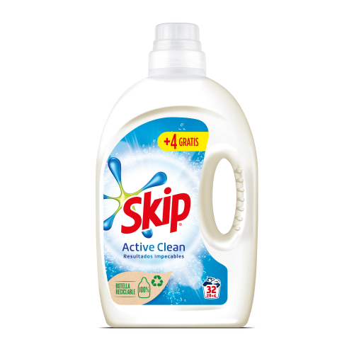 Especialmente diseñado para cuidar tu ropa. Skip Líquido Active Clean quita las manchas de tu ropa respetando sus fibras y colores. Ideal para los lavados a baja temperatura, su acción quitamanchas elimina fácilmente manchas difíciles y la suciedad sin desgastar los colores y respetando las fibras de tu ropa.