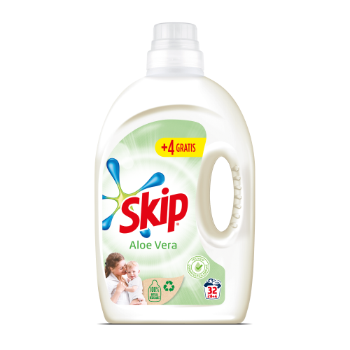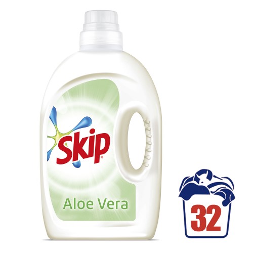 Especialmente diseñado para cuidar tu ropa. Skip Líquido Aloe Vera quita las manchas de tu ropa respetando sus fibras y colores. Ideal para los lavados a baja temperatura, su acción quitamanchas elimina fácilmente las manchas difíciles y la suciedad sin desgastar los colores y respetando las fibras de tu ropa.