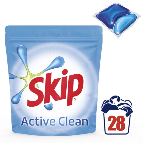 Sencilla dosificación: 1 cápsula = 1 lavado. Con Skip  cápsulas te aseguras que harás los lavados exactos que indica el envase.