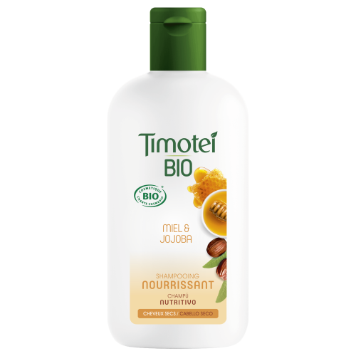 Descubre Timotei BIO Nutritivo, un champú certificado bio, ideal para el cabello seco. Su fórmula con extracto de miel y jojoba, nutre el cabello intensamente, ofreciéndote una experiencia placentera, para un cabello sano y brillante*. 98% de ingredientes de origen natural 10% de los ingredientes provienen de la agricultura biológica Certificado COSMOS ORGANIC por Ecocert Greenlife según los estándares COSMOS *Con el uso de champú y acondicionador.Aplicar sobre el pelo húmedo hasta que haga una ligera espuma y aclarar. En caso de contacto con los ojos, aclarar con abundante agua.