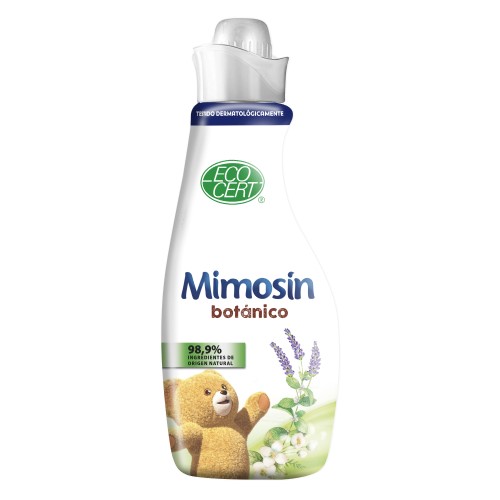El suavizante Mimosín Concentrado Botánico te proporciona toda la suavidad de Mimosín, así como un aroma fresco y estimulante de menta y lavanda, todo esto con 98,9% de ingredientes de origen natural.Contiene tensioactivos de origen vegetal para proteger y suavizar las fibras además de un conservante natural para proteger su fórmula.