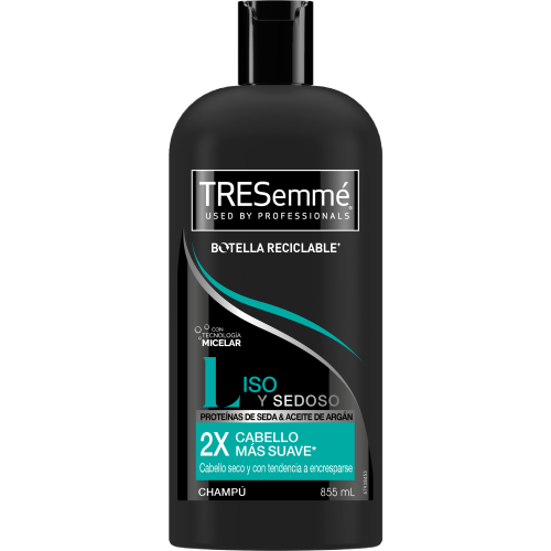 La gama Liso y Sedoso mejora espectacularmente el estado del cabello seco y con tendencia a encresparse, suavizándolo y controlando los mechones rebeldes* sin apelmazar. Con proteínas de seda y aceite de argán, devuelve la hidratación, desenreda y ayuda a protegerlo. Perfecto para conseguir un cabello más liso y suave con un aspecto sano, brillante y manejable. *Champú y acondicionador Liso y Sedoso TRESemmé vs. champú sin acondicionador.